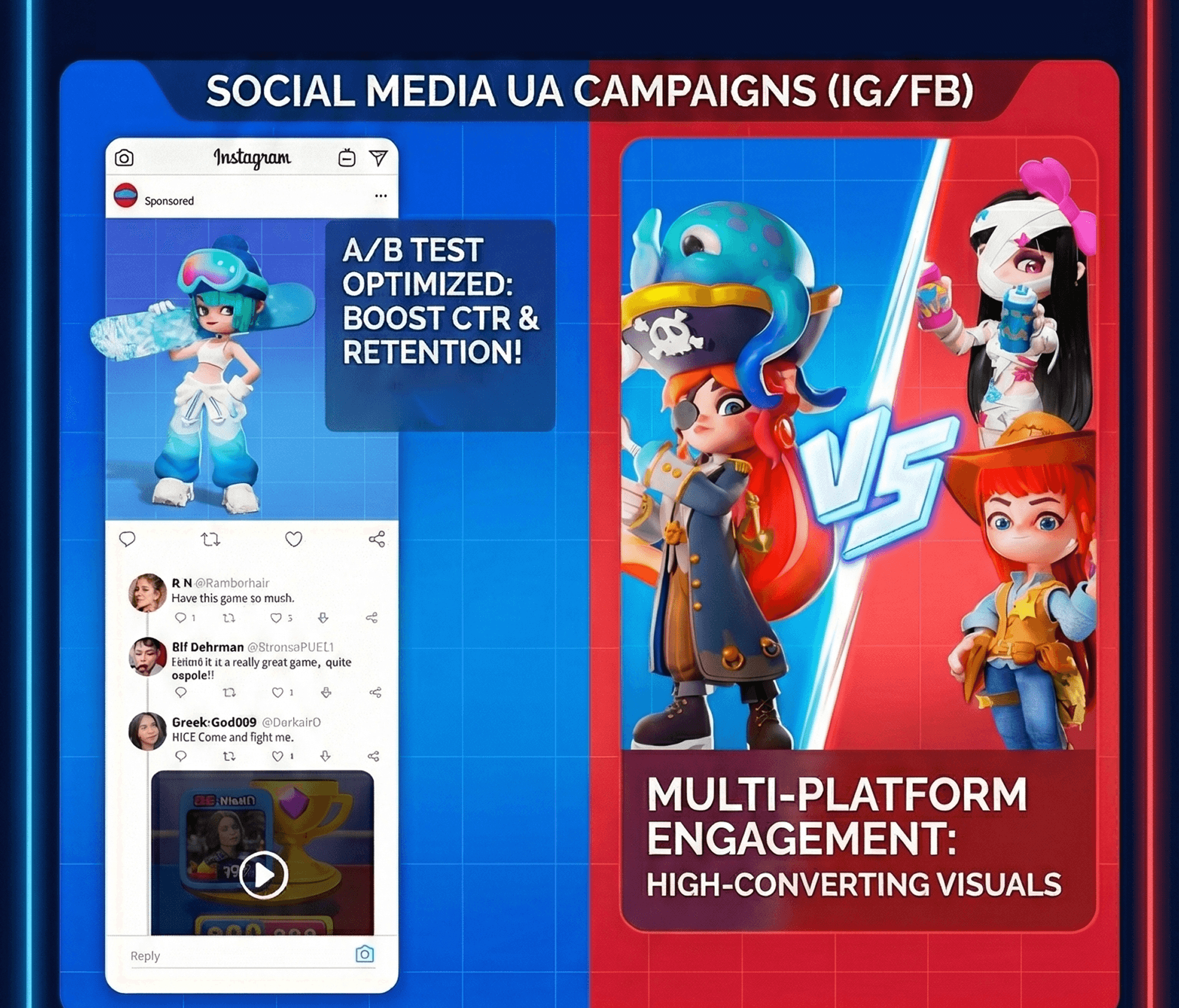 Identify "visual hooks" within extremely short attention spans. Continuously optimize click-through rate (CTR) and conversion performance of creatives through visual refinement of game mechanics.